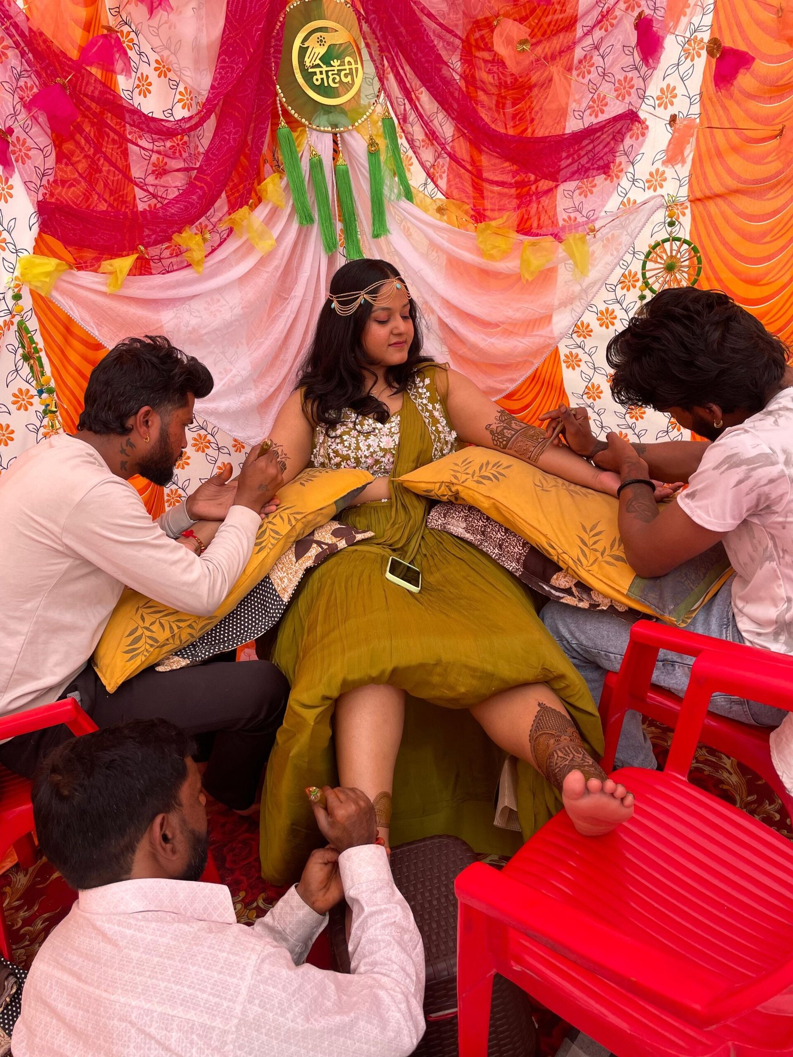 Raghav Mehndi Art is a professional Bridal Mehndi Artist in Mathura, offering beautiful, dark and long-lasting mehndi designs. With 10+ years of experience, we specialize in bridal, Arabic, traditional and party mehndi for weddings and special occasions.